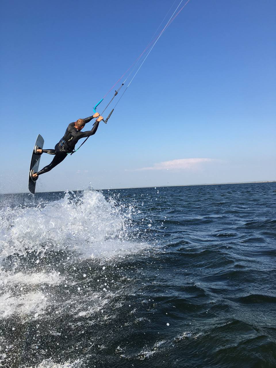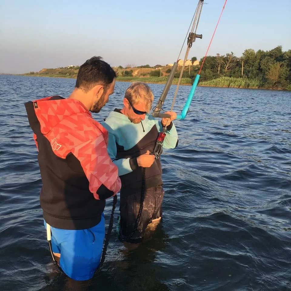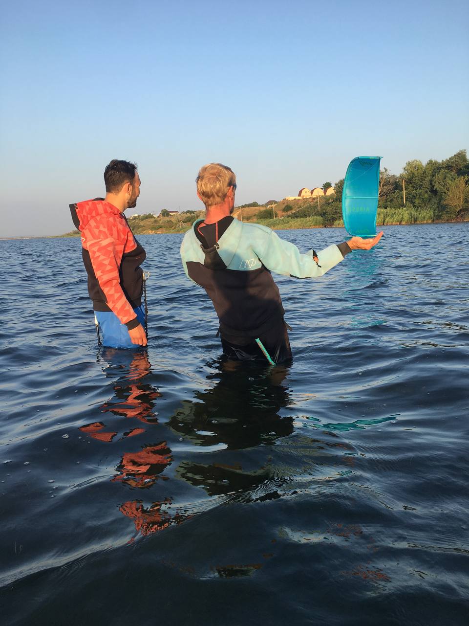 Прибрежное дно у нас очень мелкое - на расстоянии 100-150 метров глубина до пояса, что даёт возможность безопасно обучатся Кайтсёрфингу и осваивать приобретённые навыки.